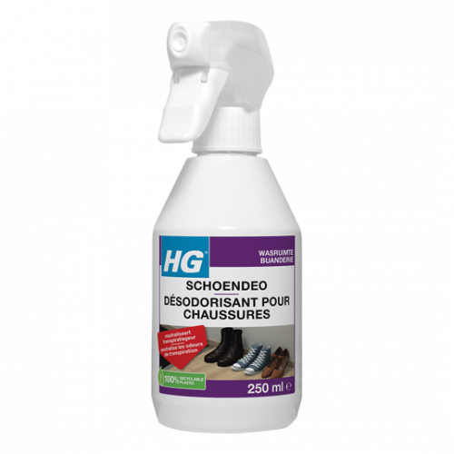 HG schoendeo is speciaal ontwikkeld om zweetgeur in schoenen effectief te neutraliseren en de schoenen voor lange tijd weer een aangenaam frisse geur te geven. De schoenverfrisser van HG is geschikt voor alle soorten schoenen, sportschoenen en sneakers.