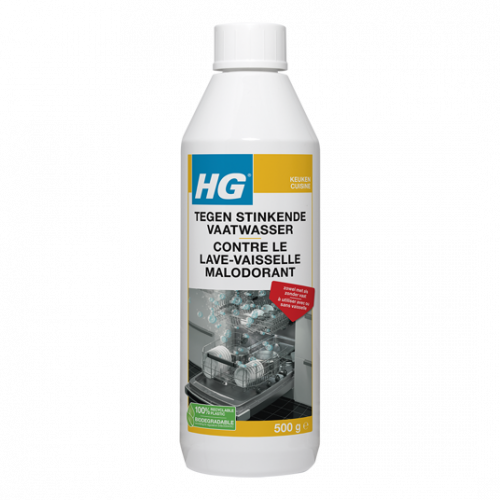 HG tegen stinkende vaatwassers zorgt voor een heerlijk fris ruikende vaatwasser. De vaatwasser kan gaan stinken door aanslag van vet, voedsel- en zeepresten in de afvoerleidingen, filter en rubbers. Dit product neemt deze vervuiling effectief weg en zorgt ervoor dat de vaatwasser voor een langere tijd lekker ruikt. Bovendien bevordert het gebruik de hygiëne en zorgt het voor een schonere vaat. Door de unieke formule is het mogelijk om dit product zowel mét als zonder vaat te gebruiken. 1 fles is goed voor 12 behandelingen