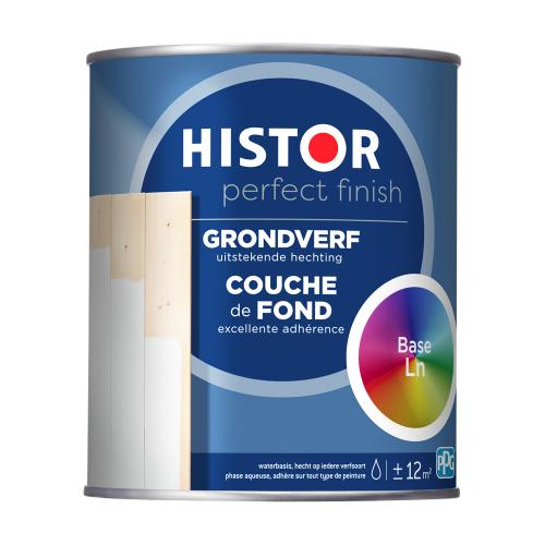 Histor Perfect Finish Grondverf is geschikt voor hout, metaal en kunststof. De grondverf is op waterbasis, maar kan over elke verfsoort heen, ook over terpentineverf. De grondverf zorgt voor een goede hechting, is optimaal dekkend en geurarm. De verf is makkelijk aan te brengen en is sneldrogend. Na 1 uur is de verf stofdroog en na 5 uur overschilderbaar. Standaard is Histor Perfect Finish Grondverf beschikbaar in wit en grijs, maar is ook in iedere gewenste kleur te mengen bij de verfmengbalie. Uitstekende hecting, optimale dekking, sneldrogend