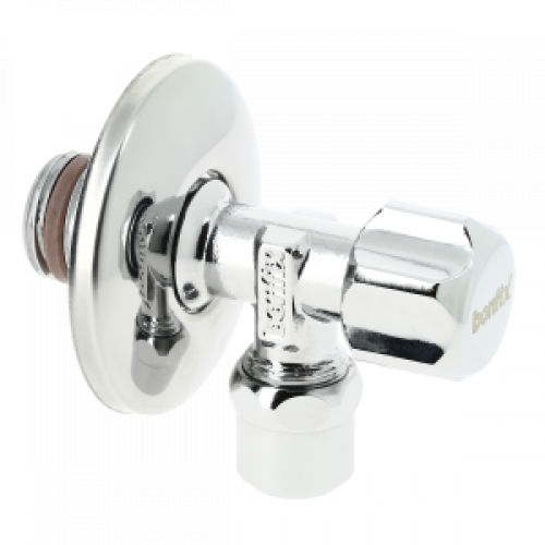 Bonfix hoekstopkraan chroom 1/2"buitendraad x 10mm knelkoppeling, met afdekrozet.