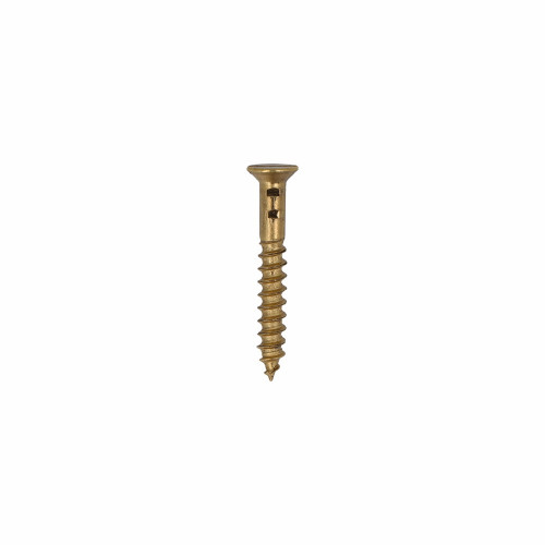 Houtschroef platverzonken kop messing blank. Een messing houtschroef wordt toegepast in zachtere materialen; zoals hout, houtvezelplaat, gipsplaat en spaanplaat. Deze schroef is verkrijgbaar in verschillende kopvormen zoals Platverzonken kop (DIN 97), Bolkop (DIN 96) en Bolverzonken kop (DIN 95) . De materiaalsoorten zijn messing blank en messing vernikkeld.