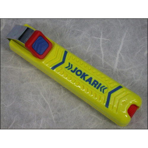 Het reeds miljoenen malen beproefde JOKARI-kabelmes van extreem slijtvast materiaal voor het afstrippen van alle gangbare ronde kabels. Eenvoudig en geniaal,snel, veilig en exact voor rond – en lengtesneden. De snijdiepte kan eenvoudig worden ingesteld ,zodat beschadigingen van de keren absoluut uitgesloten zijn.