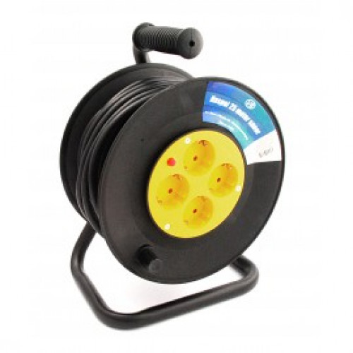 Kabelhaspel 25 meter rubberkabel 3x1.5mm² met viervoudig RA stopcontact en met thermische beveiliging.