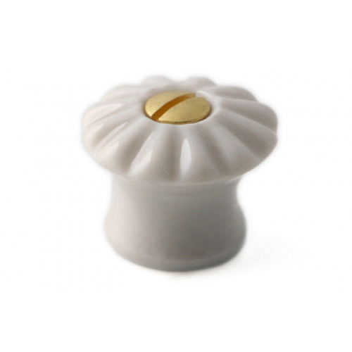 KNOP RIB PORCELEIN 19MM OUD WIT