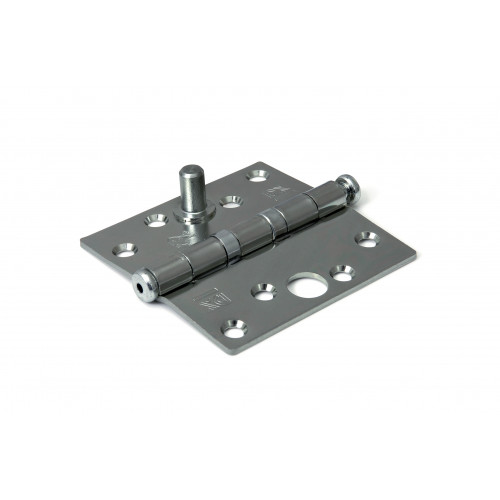 Dit CE gecertificeerde veiligheidsheidsscharnier is door zijn geïntegreerde dievenklauw door het SKG gekeurd en bestempeld als inbraakwerend en daarmee geschikt voor buitendeuren en ramen die intensief gebruikt worden. Dit product voldoet bovendien aan alle eisen om binnen het Politie Keurmerk Veilig Wonen (PKVW) toegepast te worden. Door zijn rechte hoeken is het scharnier bedoeld voor handmatige verwerking. Om het scharnier in te laten en te bevestigen kan gemakkelijk met hamer en beitel de uitsparing in deur/raam en kozijn gemaakt worden. Aan de onderkant is een scharnierknop bevestigd met daarin een gaatje. Allereerst verrijkt de scharnierknop het uiterlijk doordat boven- en onderkant nu identiek ogen. Daarnaast is er met het aangebrachte gaatje voor gezorgd dat demonteren, bijvoorbeeld wanneer u gaat schilderen, eenvoudig blijft. U slaat de bovenste pen door het gaatje gemakkelijk met een spijker omhoog. De scharnierknop en de pen zijn bovendien voorzien van een kartelrand, die voorkomt dat de scharnierknop of de pen na verloop van tijd uit het scharnier kruipt en er tevens voor zorgt dat het scharnier minder gauw scheef gaat hangen. Door de kogellagers loopt dit scharnier bijzonder soepel, wat de draagkracht en levensduur ten opzichte van een losse pen scharnier ten goede komt. Om de hoge kwaliteit van dit scharnier langere tijd te waarborgen wordt aangeraden de lagers jaarlijks te smeren met kogellagervet, zuurvrije vaseline of spray op siliconenbasis.