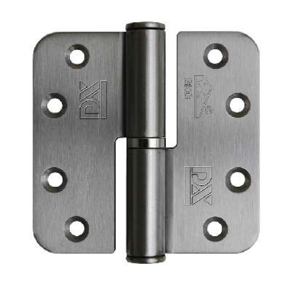 Kogelstiftpaumelle 89x89mm rechts, RVS geborsteld met ronde hoek, voor buitendeuren