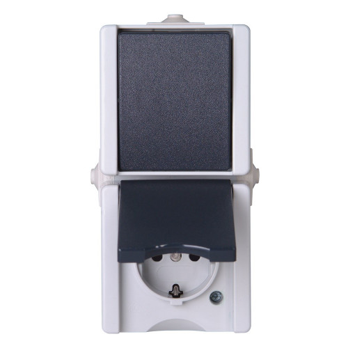 KOPP PRO-AQUA COMBI +WISSEL SCHAKELAAR VERTICAAL GRIJS IP44 OPBOUW