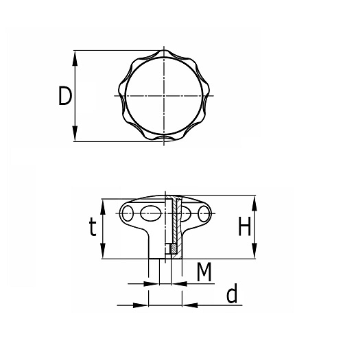 Kunststof sterknop 63mm 2-delig met voorgemonteerde moer M10