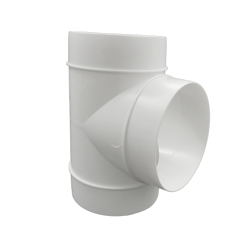 Kunststof ventilatiebuis T-stuk rond 100 mm, kleur wit.