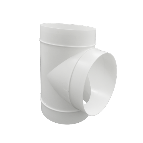 Kunststof ventilatiebuis T-stuk rond 125 mm, kleur wit.