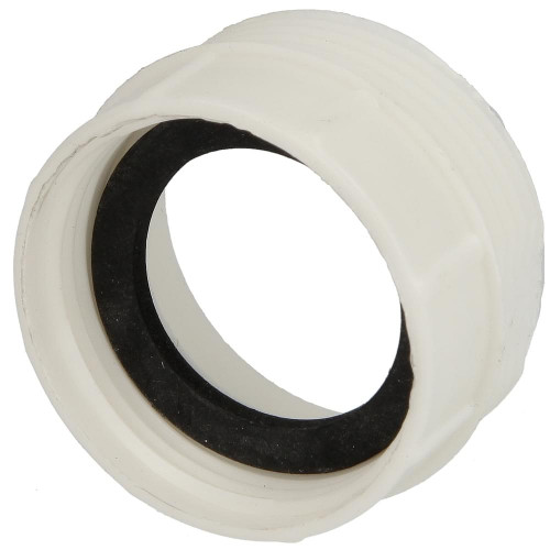 Kunststof verloop wit 1½" inwendig x 1¼" uitwending, hoogte 33 mm met pakkingring.