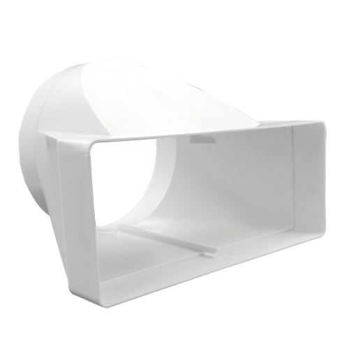 Kunststof verloopstuk van rechthoekige buis / vlakkanaal 220 x 90mm naar ronde buis 150 mm, kleur wit.