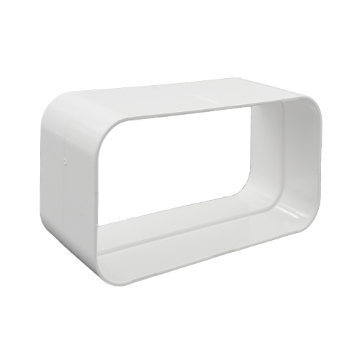 Kunststof vlakkanaal verbinder 150 x 75 mm, voor verbinding van 2 vlakke kanalen / rechthoekige buis, kleur wit.