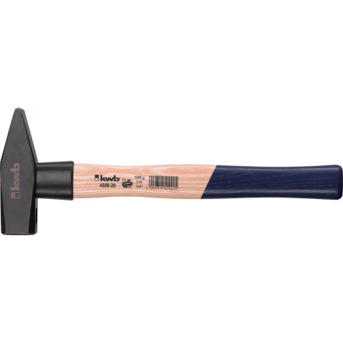 KWB bankhamer 1000 gram, TÜV GS getest, volgens DIN 1041. Blauw/blank gelakte essen steel. Voorzien van gehard stalen huis onder de kop om steelbreuk te voorkomen