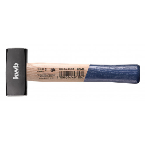 KWB moker 1000 gram, TÜV GS getest, volgens DIN 6475. Vuist model blauw/blank gelakte houten steel.
