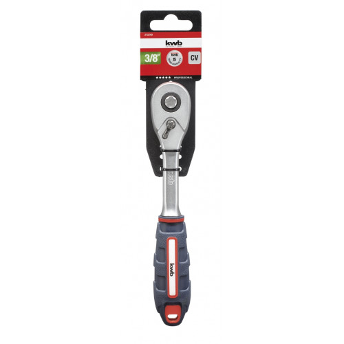 KWB professionele handratel 3/8". CV-staal, ratel, omschakelbaar links of rechts draaiend, mat verchroomd, kogelvergrendeling met drukknop, met slipvaste 2 componentengreep voor een optimale krachtoverdracht en meer comfort tijdens het werken