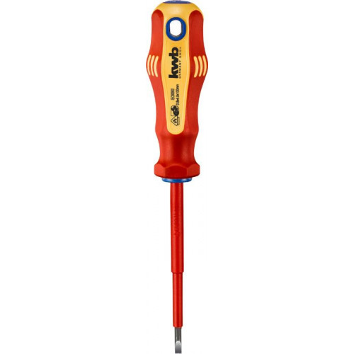 KWB VDE-gekeurde schroevendraaier, geïsoleerd, 4.0 x100 mm, CV-staal, 3 componentenheft voor een optimale krachtoverdracht en veel grip tijdens het werken, steel compleet geïsoleerd, met gebruineerde precisiekop. Een snel herkenbaar kleurcodesysteem geeft de gewenste kopvorm aan.