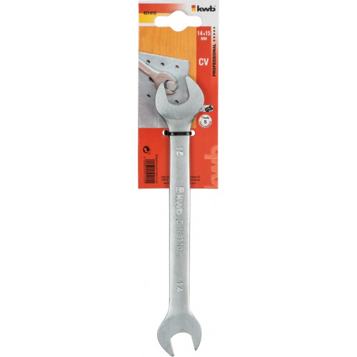 KWB steeksleutel 14x15mm, TÜV Rheinland/GS-gekeurd, DIN 3110, CV-staal, satijnafwerking, golfprofiel, voor werkzaamheden met zeskant- en vierkantschroeven of -moeren