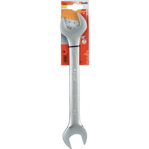 KWB steeksleutel 24x27mm, TÜV Rheinland/GS-gekeurd, DIN 3110, CV-staal, satijnafwerking, golfprofiel, voor werkzaamheden met zeskant- en vierkantschroeven of -moeren