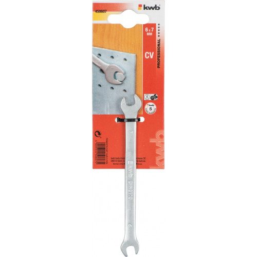 KWB steeksleutel 6x7mm, TÜV Rheinland/GS-gekeurd, DIN 3110, CV-staal, satijnafwerking, golfprofiel, voor werkzaamheden met zeskant- en vierkantschroeven of -moeren