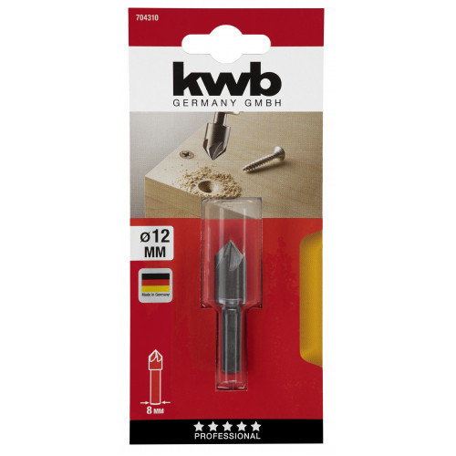KWB verzinkboor 12mm, WS 90°, 5-snijder, voor het verzinken en het perfect laten aansluiten van schroeven met verzonken kop, voor hout- en non-ferrometaalbewerking.
