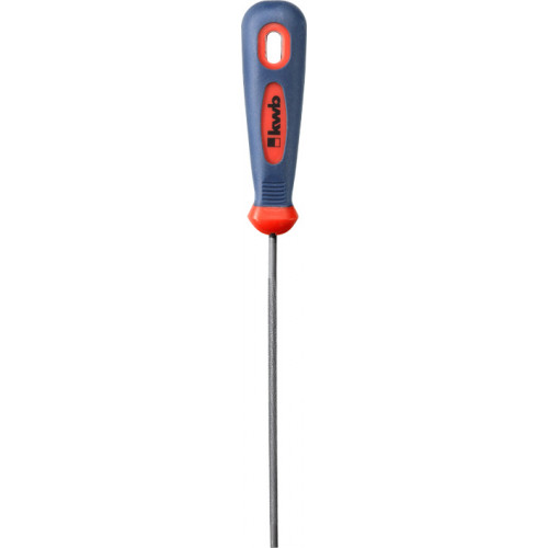 KWB zaagkettingvijl, rond 4,8 x 200 mm. Hoogwaardig vijlstaal, voor het scherpen van de tanden van zaagkettingen. Met 2 componentengreep voor een optimale krachtoverdracht en meer grip tijdens het werken. Met ophanggat in de greep.