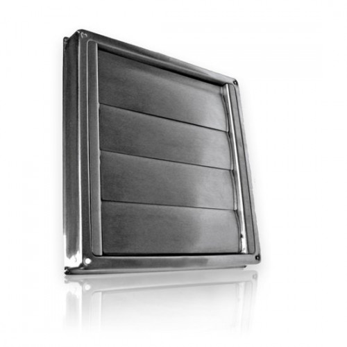 Hoogwaardig RVS (AISI 304) metalen lamellenrooster uitvoering in Inox. Aansluitdiameter Ø100 mm (buitenrooster), inclusief rvs schroeven, spanveren en afdichtrubber.
