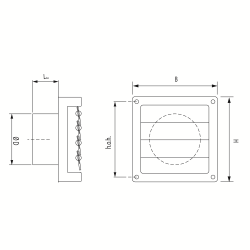 Hoogwaardig RVS (AISI 304) metalen lamellenrooster uitvoering in Inox. Aansluitdiameter Ø125 mm (buitenrooster), inclusief rvs schroeven, spanveren en afdichtrubber.