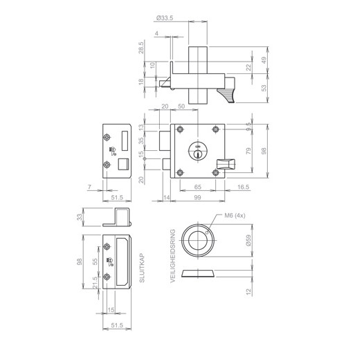 1753 Lips veiligheidsoplegslot met vaste buitencilinder SKG**