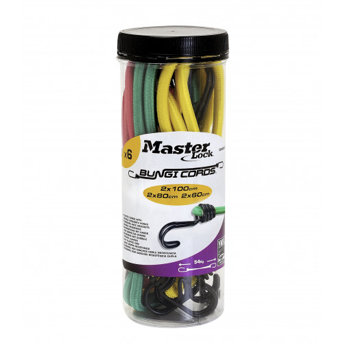 De MasterLock Twin Wire set beschikt over een assortiment van 6 elastische koorden met metalen haken voor extra stevigheid. Het omgekeerd haakontwerp biedt meer ruimte voor bevestiging. De haken zijn afgerond om krassen te voorkomen. De set wordt geleverd met een plastic pot voor gemakkelijk opbergen, organiseren en vervoeren.