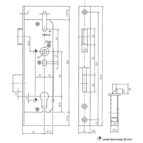 MAUER SMALDEURSLOT PC92 PZW 35MM RVS VP24MM LS/RS