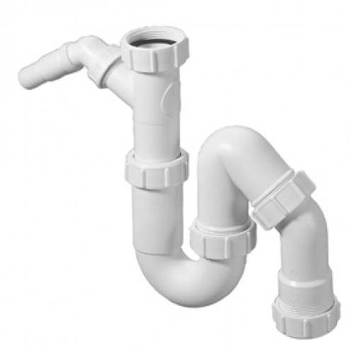 Mc Alpine sifon kunststof universeel 6/4"x40mm met wasmachine-aansluiting wit.