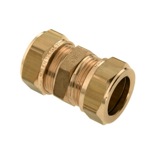 De messing knelsok kan gebruikt worden om de uiteinden van verschillende buizen aan elkaar te koppelen. Deze sok heeft een afmeting van 22 x 22 mm.