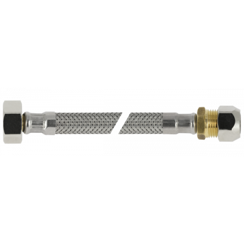 Deze flexibele aansluitslang is geschikt voor het flexibel koppelen van waterleidingen of kranen. Aansluitmaat 3/8" binnendraad x 15mm knelkoppeling.