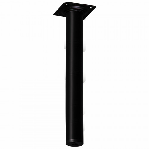 Deze ronde meubelpoot is 3cm dik en 25cm hoog. De meubelpoot bevestig je met 4 schroeven aan je meubel. Onder de meubelpoot is een stelvoet te schroeven; je meubelpoot wordt daar 1cm hoger van. De stelvoet kun je maximaal uitdraaien tot 3cm. De meubelpoot is van metaal in de kleur zwart. Schroeven zijn niet bijgesloten. Afneembaar met vochtige doek en niet-agressief schoonmaakmiddel. Het product is geschikt voor gebruik binnenshuis in droge ruimten.