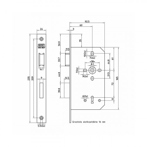 NEMEF 60MM DEURSLOT 666/4-KV LINKS +2SLEUTELS
