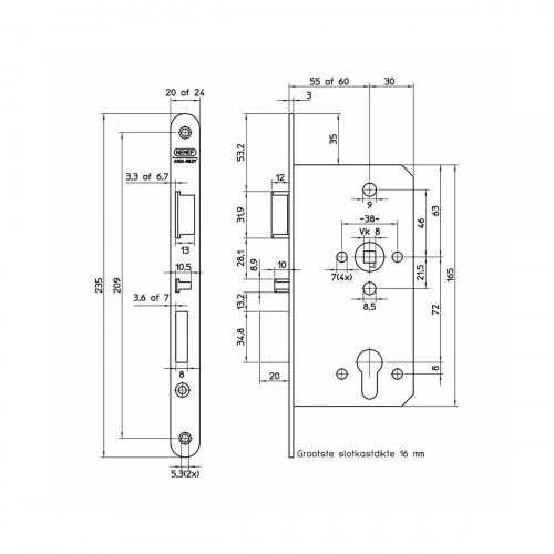 | Afmetingen voorplaat | 24 x 235 mm |