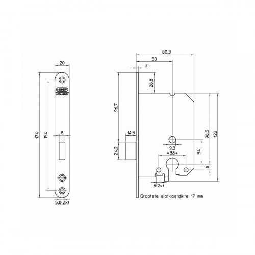 ·Geschikt voor kastdeuren in de woningbouw. Standaard slotkast met PC-uitsparing en afgeronde voorplaat.