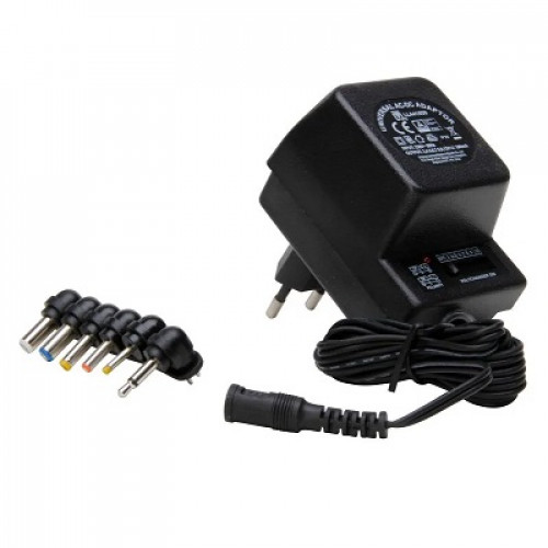 Kopp netadapter universeel. Voor aansluiting van bijv. radio, cassetterecorder, etc. op het lichtnet (230V). Ingangsspanning: 220/230V~ (AC), 50 Hz. Uitgangsspanning: 3 / 4,5 / 6 / 7,5 / 9 / 12 Volt gelijkspanning (DC), 300 mA, de polariteit (+ en -) is omschakelbaar, uitgevoerd met 6 verschillende typen stekkers. Ongestabiliseerde uitvoering.