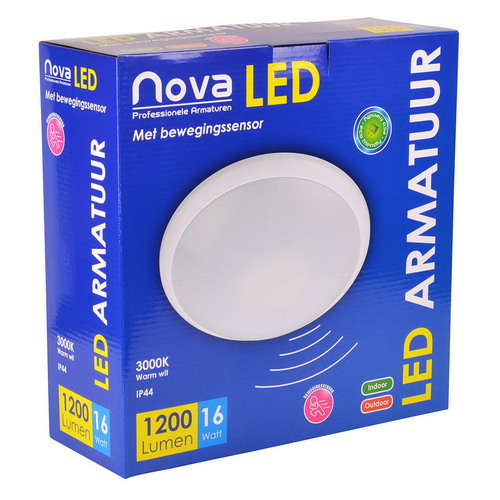 NOVA LED PLAFOND/WAND LAMP 16W 3000K +SENSOR 1200L