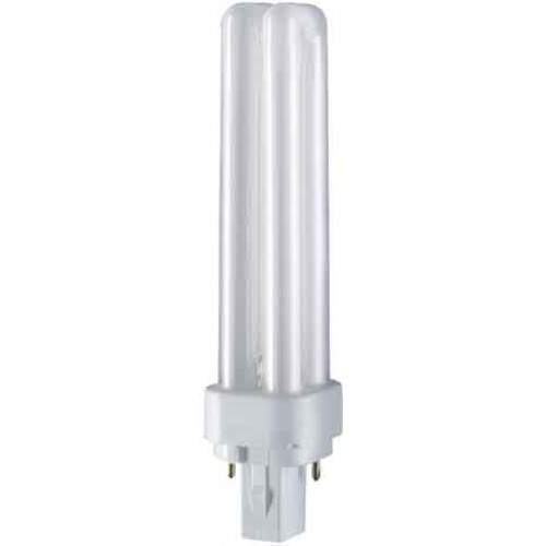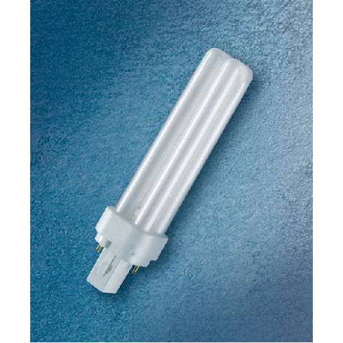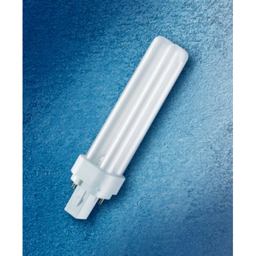 De Osram Dulux-D 10W kleur 827 is een zeer energie zuinige professionele spaarlamp. Voor gebruik met conventioneel vsa. Deze Dulux D spaarlampen maken gebruik van een G24D lampvoet. De lichtopbrengst bij 25°C is 68 - 72 Lumen/watt. OSRAM's DULUX D geeft dus veel en kwalitatief goed licht voor een laag wattage, wat deze lamp een veel gebruikte lamp maakt voor kantoren, portalen en buitenverlichting. Deze DULUX D met 2 pinnen is niet dimbaar. Lamp is eenvoudig te vervangen door deze uit de fitting te trekken.