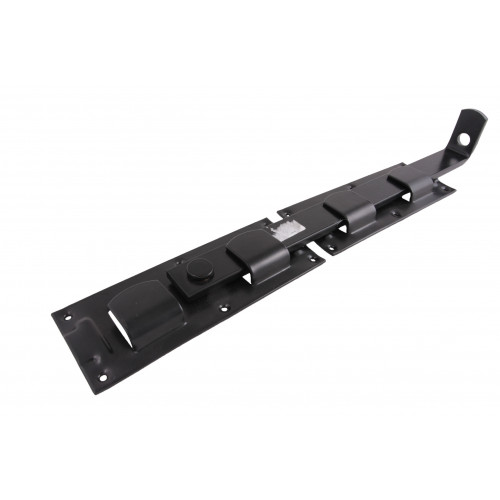 Overslaggrendel zwart, opschroevend model met oog voor een hangslot.