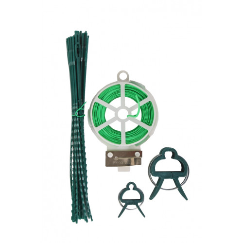 Deze 61-delig plantenbindset is geschikt voor het bijeenhouden van plantenstengels of het binden van plantenstengels aan een plantensteun. Dit set bestaat uit 20 bindbandjes, 20 kleine plantenclips, 20 grote plantenclips en 1 rol binddraad van 30 meter. Deze rol binddraad is voorzien van een mesjes, zodat u het draad makkelijk kunt afsnijden