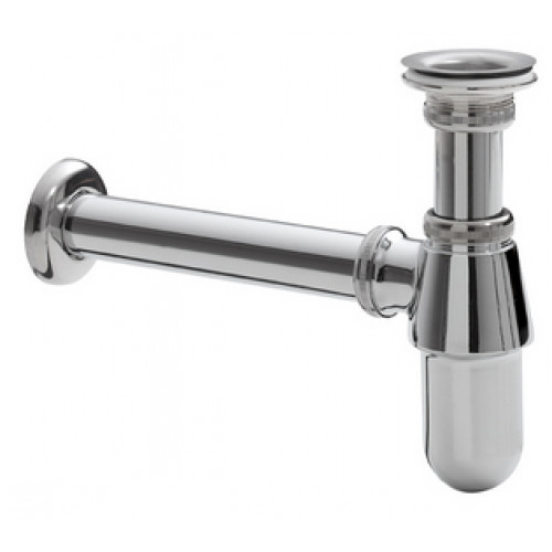 Deze verchroomde plugbekersifon is universeel toepasbaar op alle wastafels en fonteintjes zonder waste. De bekersifon beschikt over een afvoerbuis met een doorsnede van 32mm en wordt geleverd met rozet.