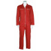 Rally overall rood, 100% katoen met 2-weg ritssluiting, elastiek in taille, 2 borstzakken met ritssluiting, 2 zijzakken, 2 intasten, achterzak en duimstokzak.