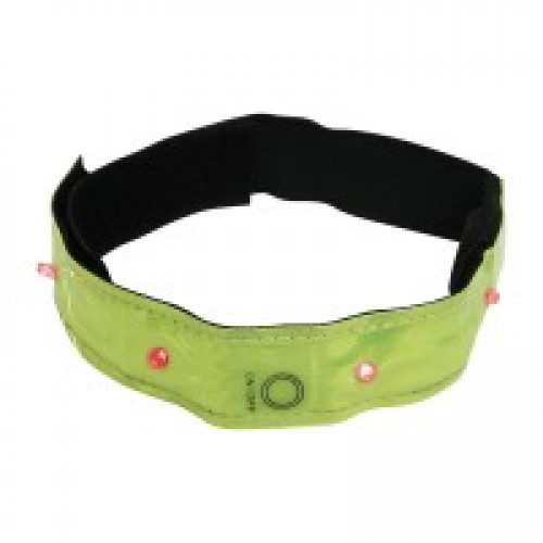 Reflecterende band inclusief 4 leds, voor extra veiligheid tijdens buitenactiviteiten. Klittenbandsluiting. Inclusief CR2032 batterij.