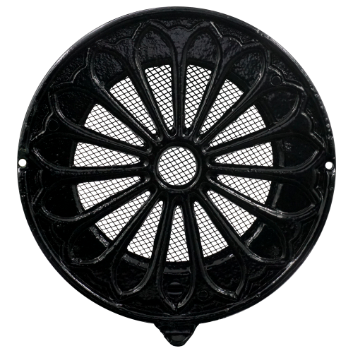 Aluminium rond Retro design voorzijde met RVS metalen aansluitstuk (buitenrooster), inclusief muggennet, rvs schroeven en spanveren. Verkrijbaar in Brons tint (RAL7043) en zwart