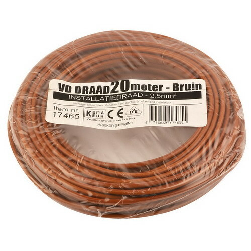 Rol a 20 meter VD-draad bruin 2,5mm2.