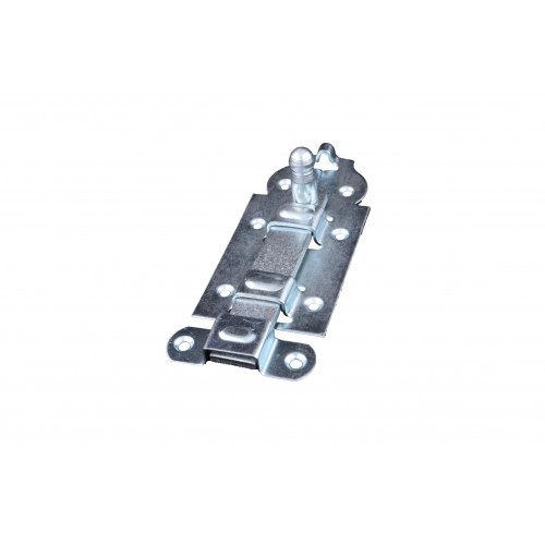 Rolschuif vlak 120x55mm, staal, verzinkt. Met verdekte rollen. Zwaar model. Rechthoekige grondplaat en sluitbeugel, beide voorzien van verzonken schroefgaten. Vlakke schoot en gedraaide sluitknop.