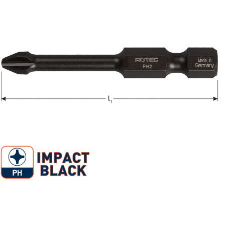Black-impact schroefbits t.b.v. impact-slagschroefmachines. De aangepaste optimale geometrie vormt samen met het geharde speciaalstaal de basis voor een perfecte taaie schroefbit. Ideale schroefbit om in te zetten onder de zwaarst denkbare omstandigheden.